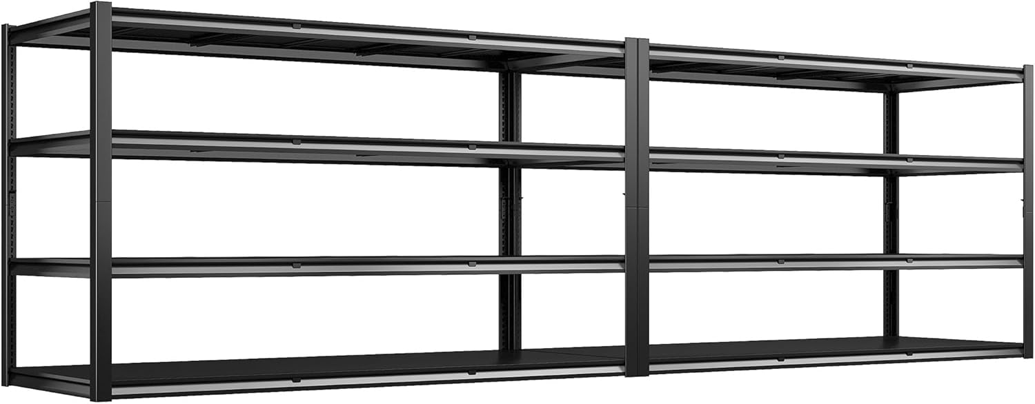 REIBII 60" W Garage Shelving Heavy Duty 2650LBS Storage Shelves Metal Shelving, Adjustable Garage Shelves, 4 Tier Industrial Shelf for Warehouse, Basement, Pantry, 60" W x 24" D x 60" H, 2 Pack