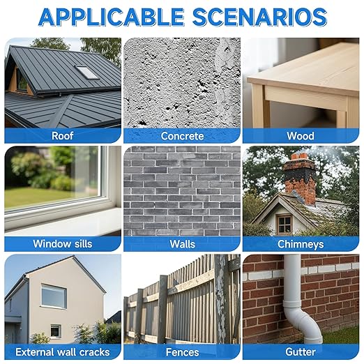 - 【Versatile Application】Ideal for everything from household repairs to outdoor constructions, our Flex Sealing Adhesive excels on surfaces like wood, metal, and concrete. It's perfect for sealing leaks in kitchens, bathrooms, roofs, windows, basements, patios, boats, car interiors, external walls, and gutters, effectively preventing water damage and corrosion across diverse environments.