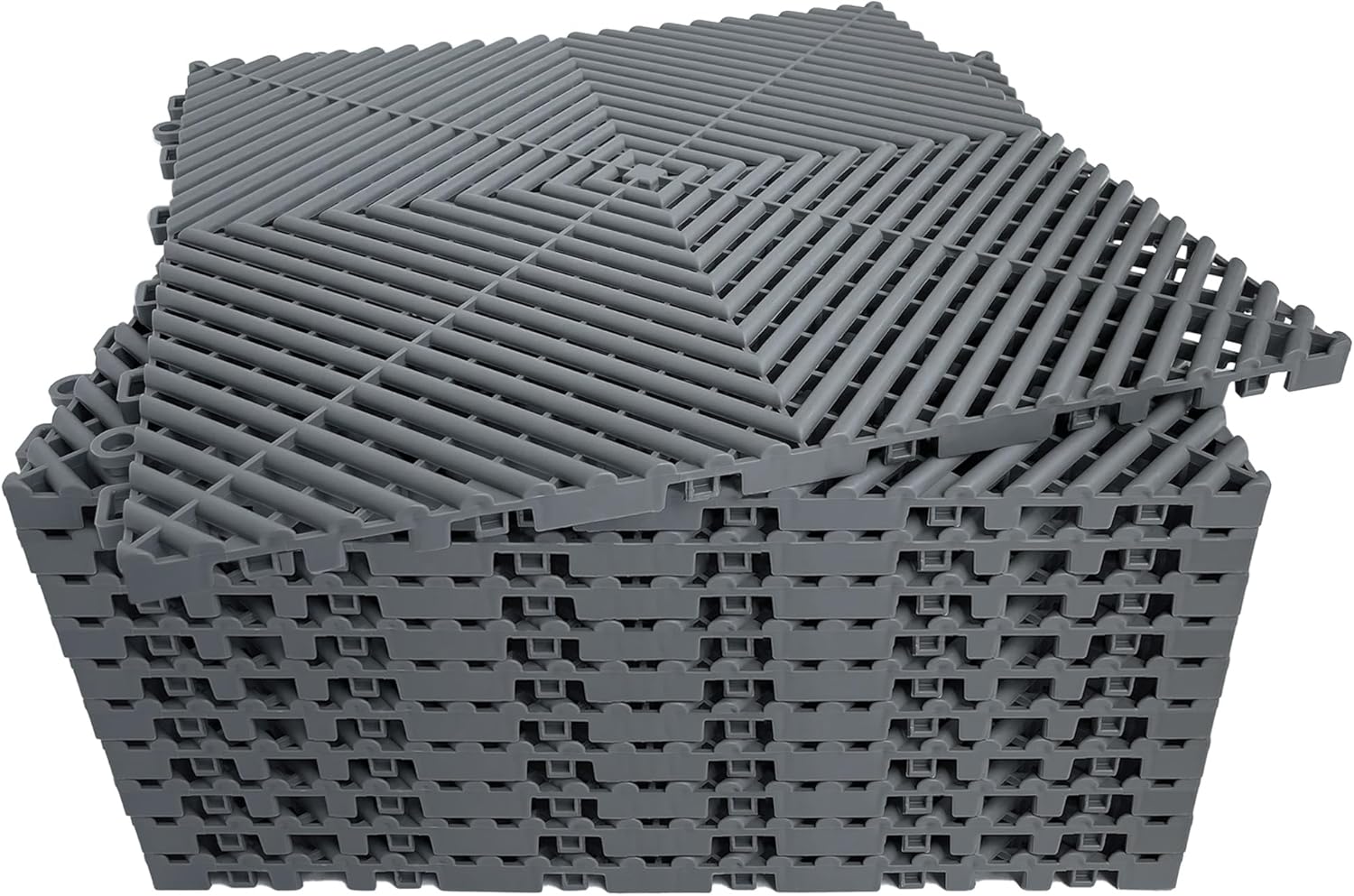 12 Pack 16"x16" Interlocking Garage Floor Tiles - Drainage Mats, Non-Slip, Heavy-Duty, Easy Install for Garage, Car Wash, Basement(Gray)