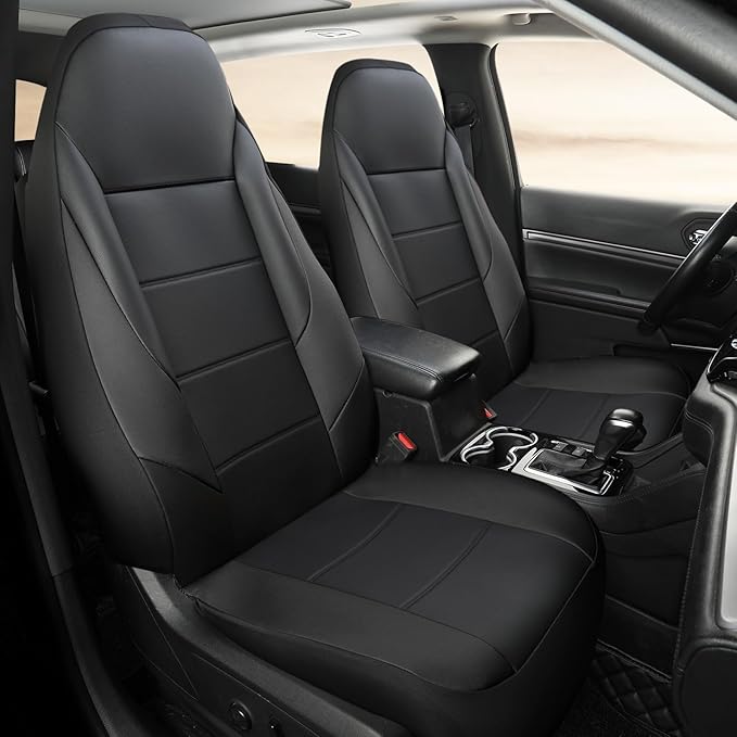 GIANT PANDA Front Car Seat Cover for Jeep Wrangler TJ (1997-2006),Leather Bucket Seat Covers Custom Fit Jeep Accessories (Black) 2-Pack