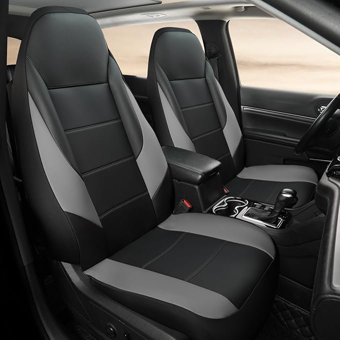 GIANT PANDA Front Car Seat Cover for Jeep Wrangler TJ (1997-2006),Leather Bucket Seat Covers Custom Fit Jeep Accessories (Grey+Black) 2-Pack