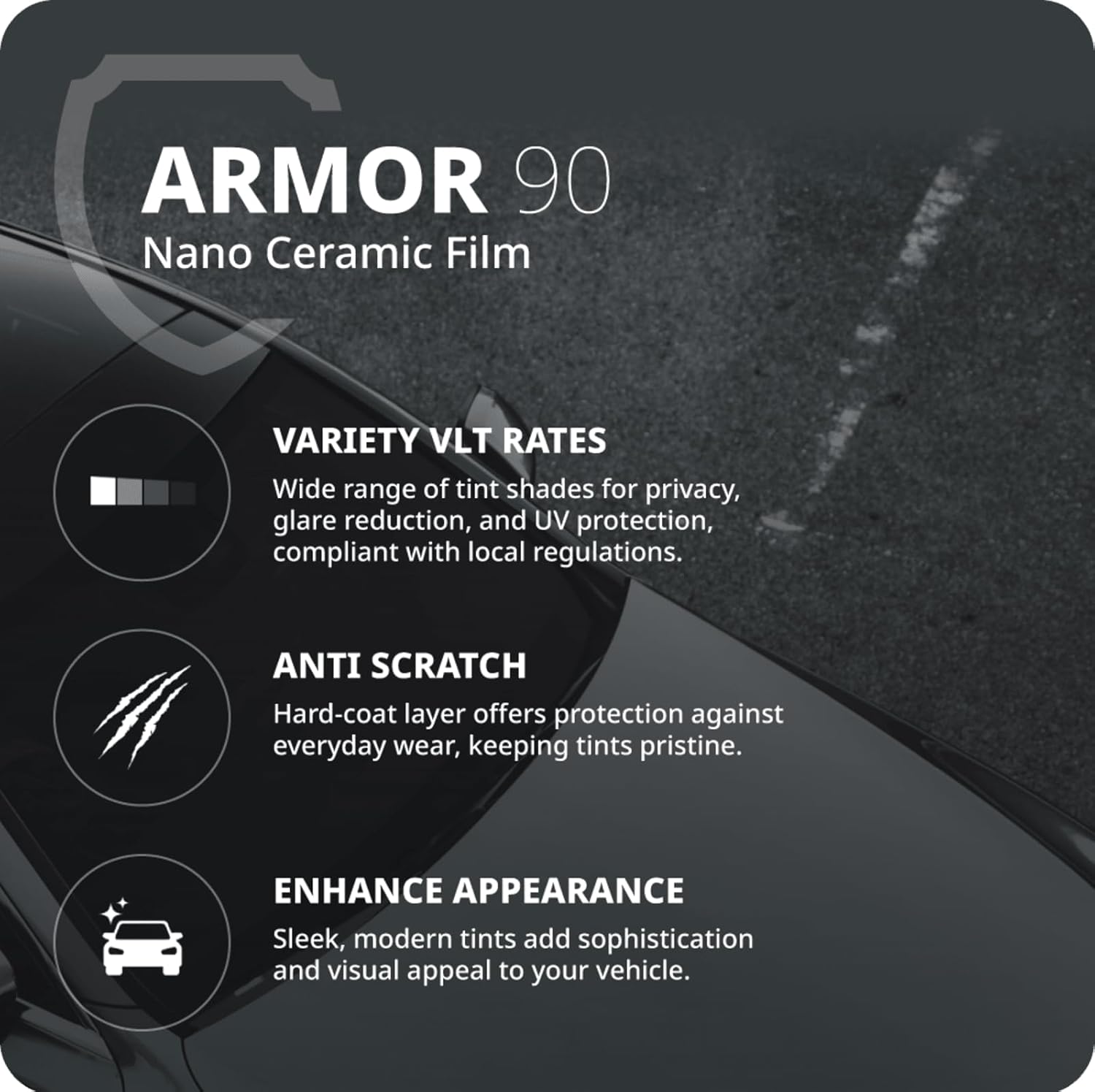 - INFRARED AND HEAT BLOCKING - The Armor 90 Series blocks out up to 95% of Infrared rays, protecting you from a large majority of solar heat and potentially cutting down on energy usage due to less reliance on air conditioning.