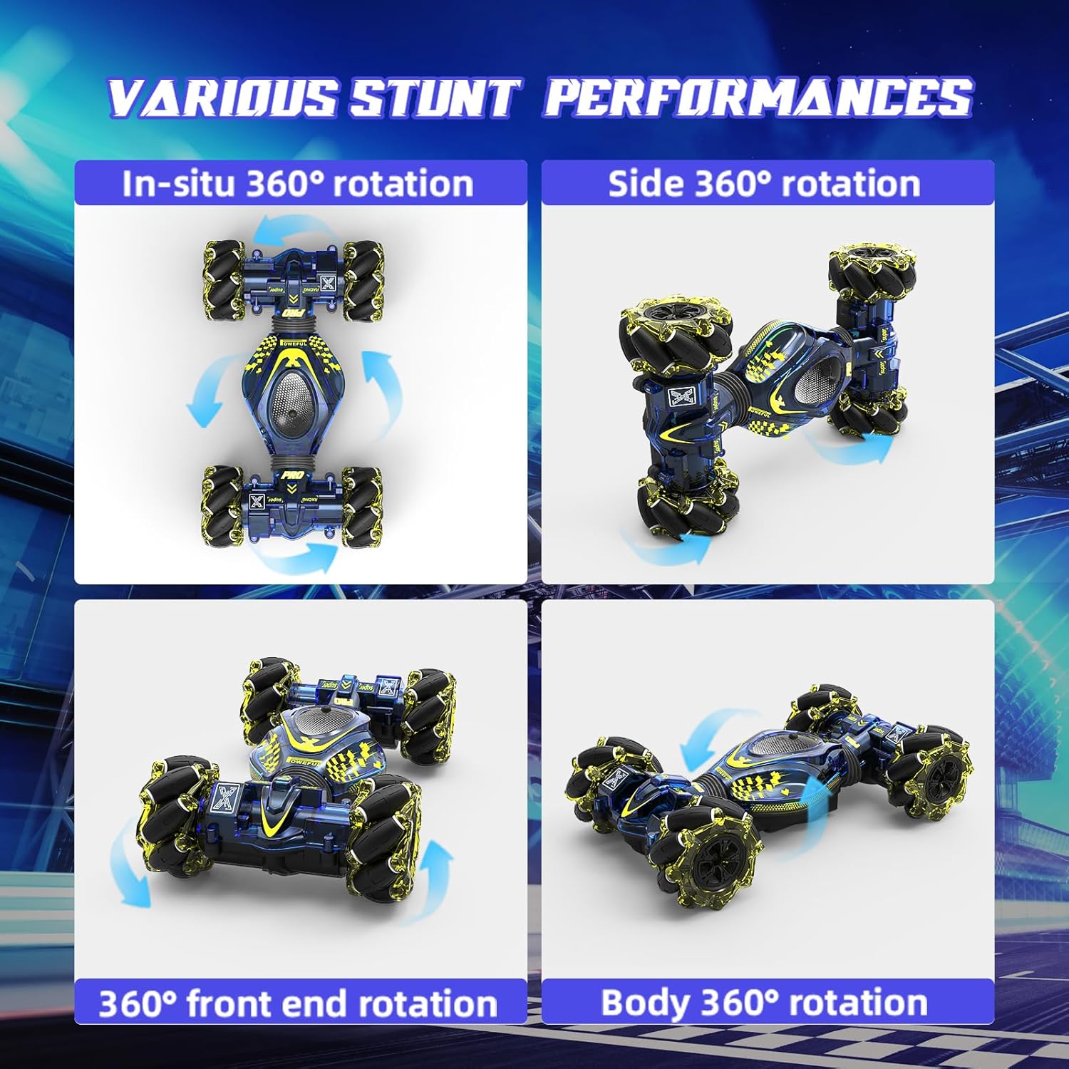 - All-Round Drift Stunt RC Car:4WD gesture sensing stunt car can drive and drift in all directions, 360° rotation, 45° climbing, snaking, double-sided flip, twist into off-road and on-road modes.children to operate this off road stunt car via 3 senstive control modes easily. Loads of fun for your kids.