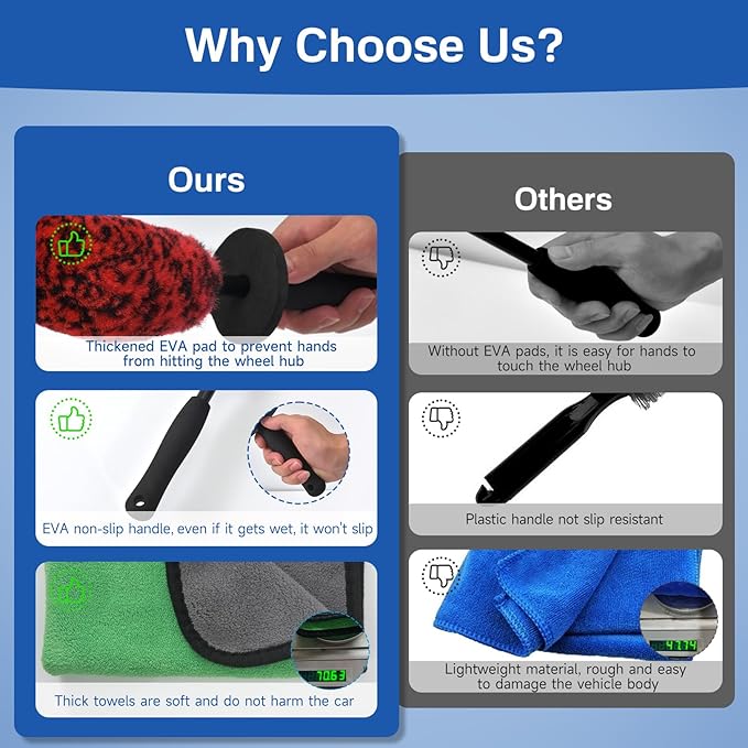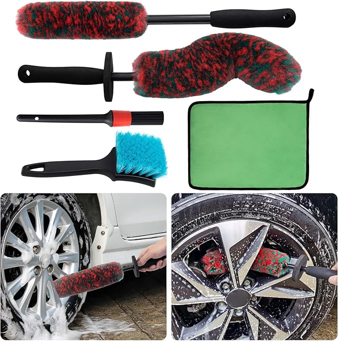 - AMAZING CLEANING EFFECT:Our car wheel cleaning brushes can be bent 360 degrees for deep cleaning, combined with detail brush and stiff tire brush to penetrate into small crevices, bolts, hubcaps, and other intricate wheel details, ensuring comprehensive cleaning. In addition, our wheel cleaner brush is equipped with very thick and soft synthetic wool fibers,which can hold tons of cleaning liquids and foam, quickly and easily wash away dirt on wheels
