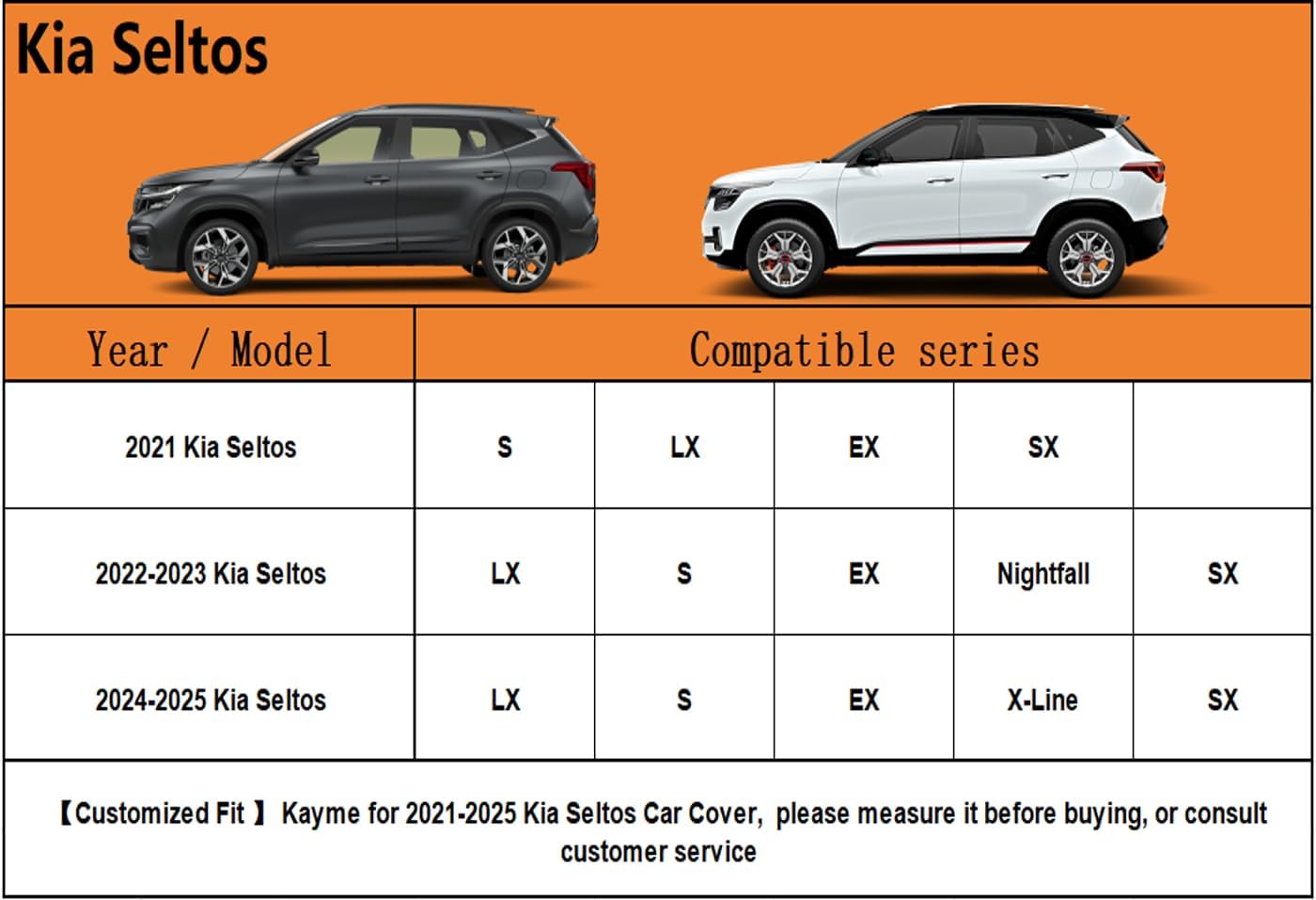 - 【Suitable for】— Custom fit for Kia Seltos(2019-2025) Come with a large enough portable bag to store your cover when you do not use.
