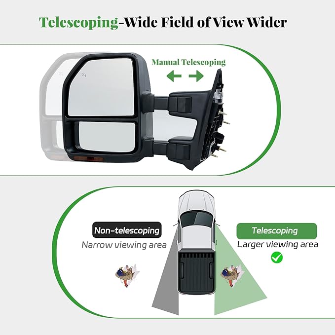 - WHAT YOU GET: A Pair of Towing Mirrors (Include Left Side and Right Side). Please check your car information before purchase. We have a year of sale service, if you have any questions, please feel free to contact us