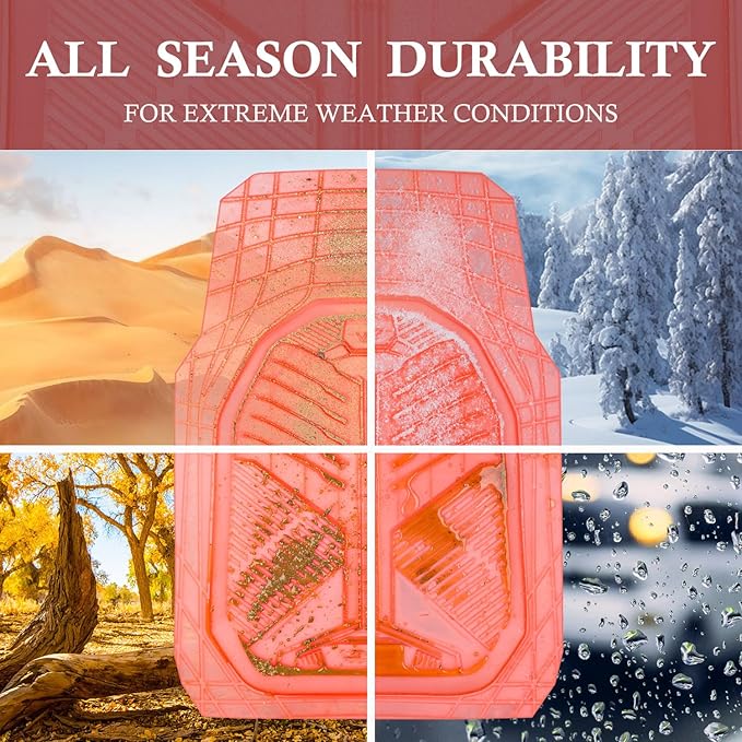 - All Weather Protection: The CAR PASS Heavy-duty Deep-Dish rubber car floor mats use for all season odorless durability Protect your car floors from dirt and debris wear resistant. Easy to clean. DeepDish design of the car mats can holds water, snow, mud, and road salt All Weather-Proof.