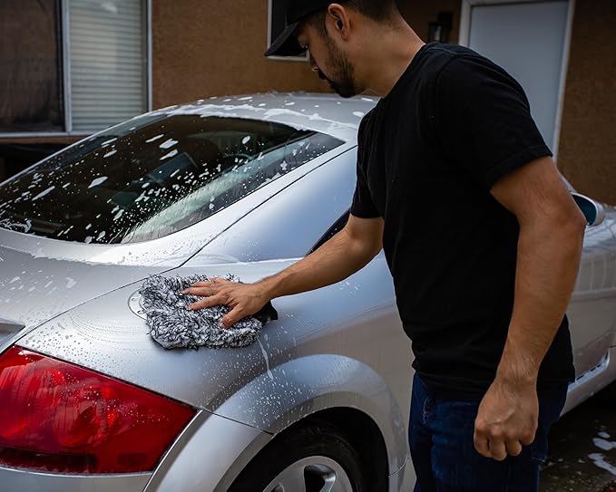 - Unmatched Absorption: High-grade 70/30 microfiber strands are packed into every square inch, soaking up tons of suds. Our mitts hold a whopping 7 times their weight in water, allowing for a fast, streak-free wash without lint left behind.