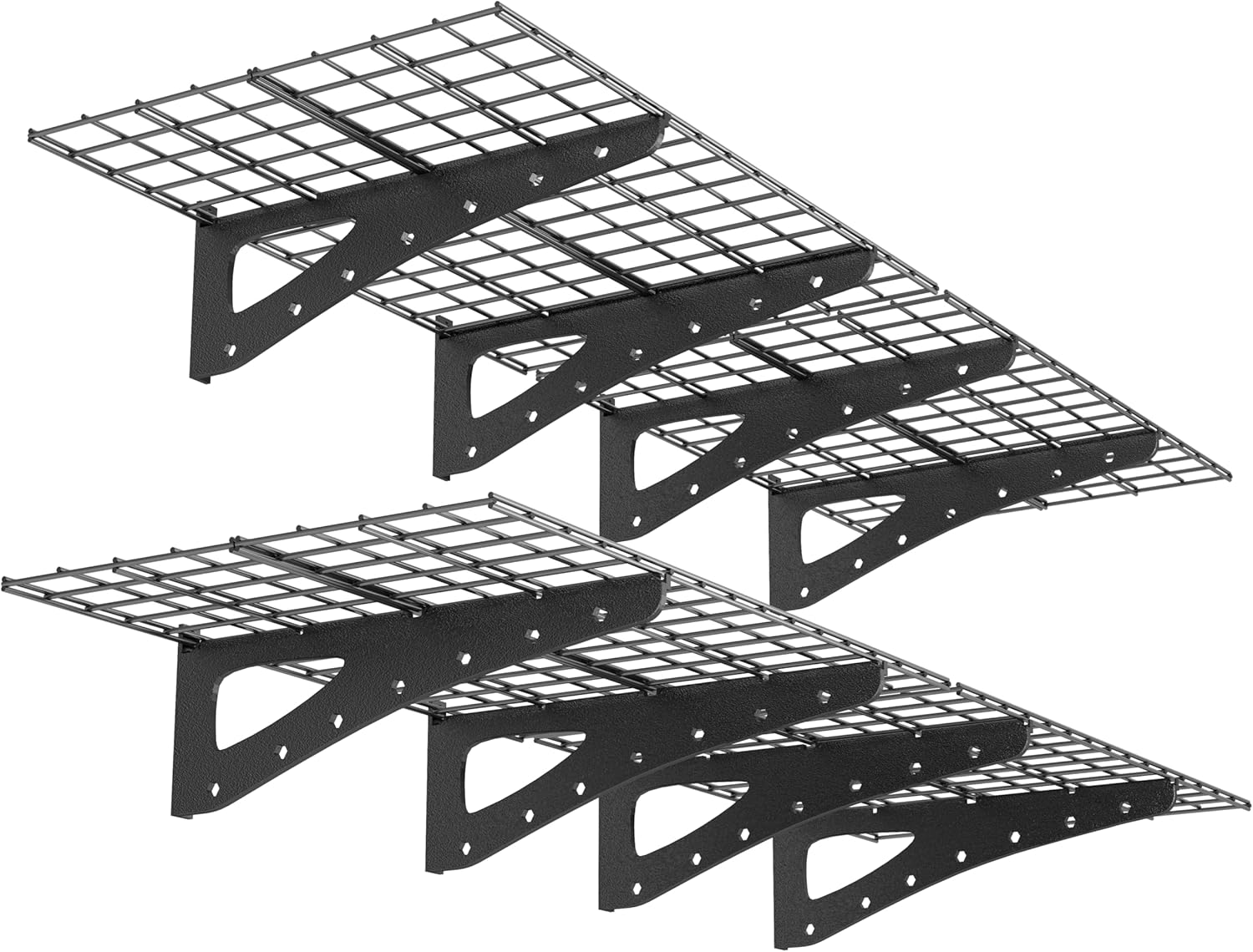 2-Pack Garage Wall Shelving, 2x6ft Walls Shelf Storage Rack, Sturdy Walls Shelves for 1200 LBS, Black, Heavy Duty Garage Shelving Wall Mounted for Storeroom, Kitchens and Basement, 70.86" x 23.6"