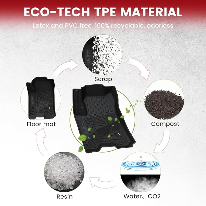 - 【Durable & Safe Material】LASFIT all weather floor mats use elastic TPE (Thermoplastic Elastomer), no foul odor is produced even at high temperatures, soft touch and exquisite finish. The floor mats for cars are skid-proof and recyclable.