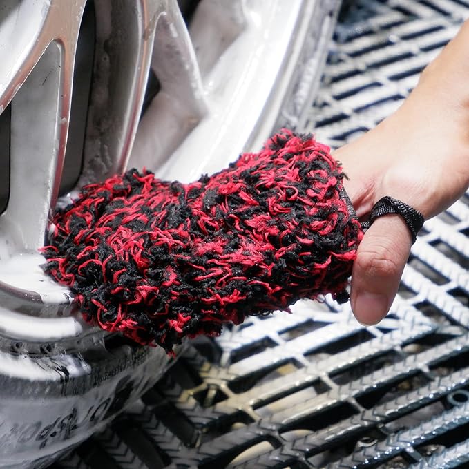 - SCRATCH-FREE CLEANING: Our metal-free design and extra-soft woolies and microfiber ultra plush wheel mitt ensure safe cleaning on all types of wheels, minimizing the risk of scratches. The comfortable foam grip prevents slipping during use