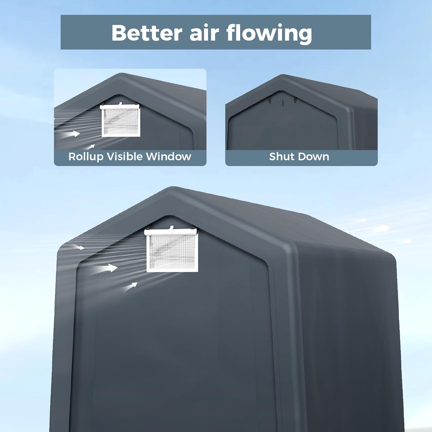 - 【Roll-up Ventilation Windows Design】 Our outdoor storage shed carport doors feature dual zippers and buckles for easy removal or roll-up. Equipped with a mesh window, they offer superior ventilation, promoting airflow and reducing moisture build-up.