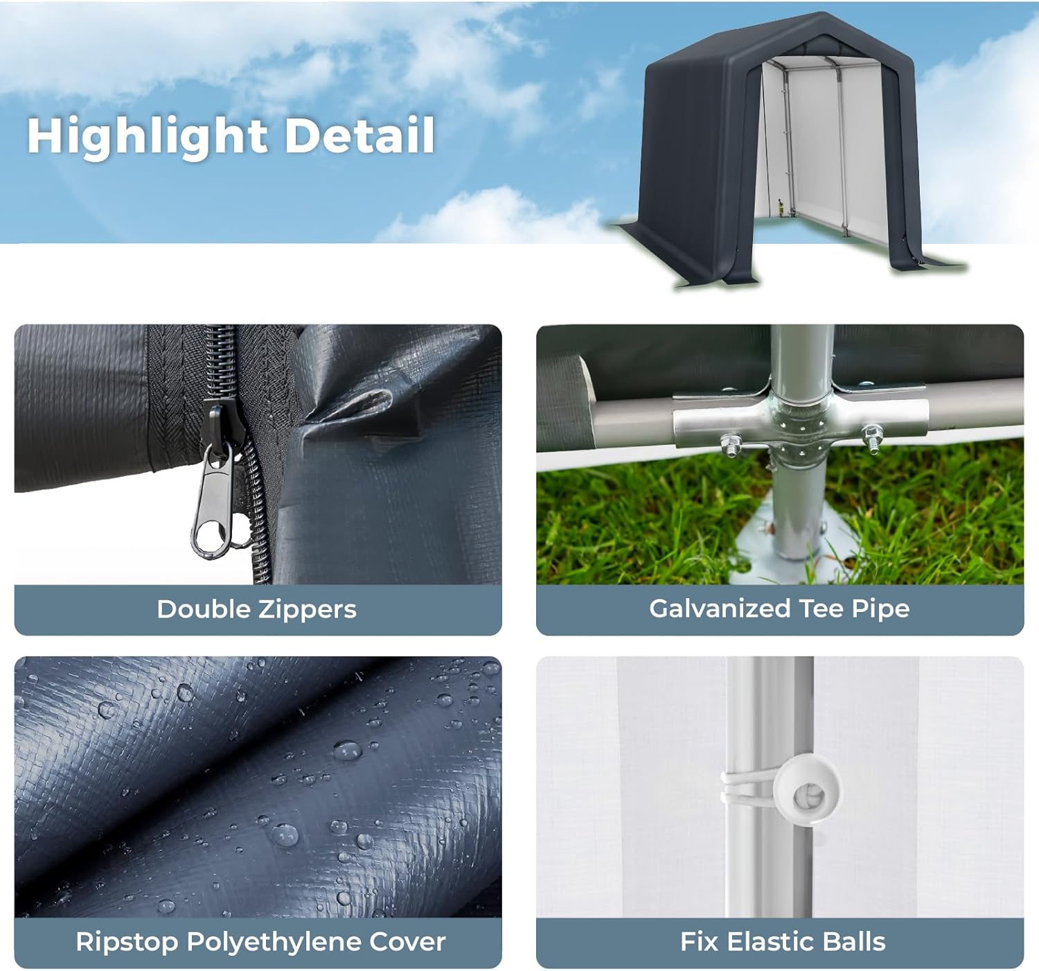 - 【Enhanced Durability with Galvanized Tubes 】Our storage sheds boast a heavy-duty, rust-resistant galvanized steel framework and metal corner joints. The galvanization process ensures protection against chipping, peeling, rust, and corrosion. Plus, the tool-free frame design allows for swift and effortless assembly.
