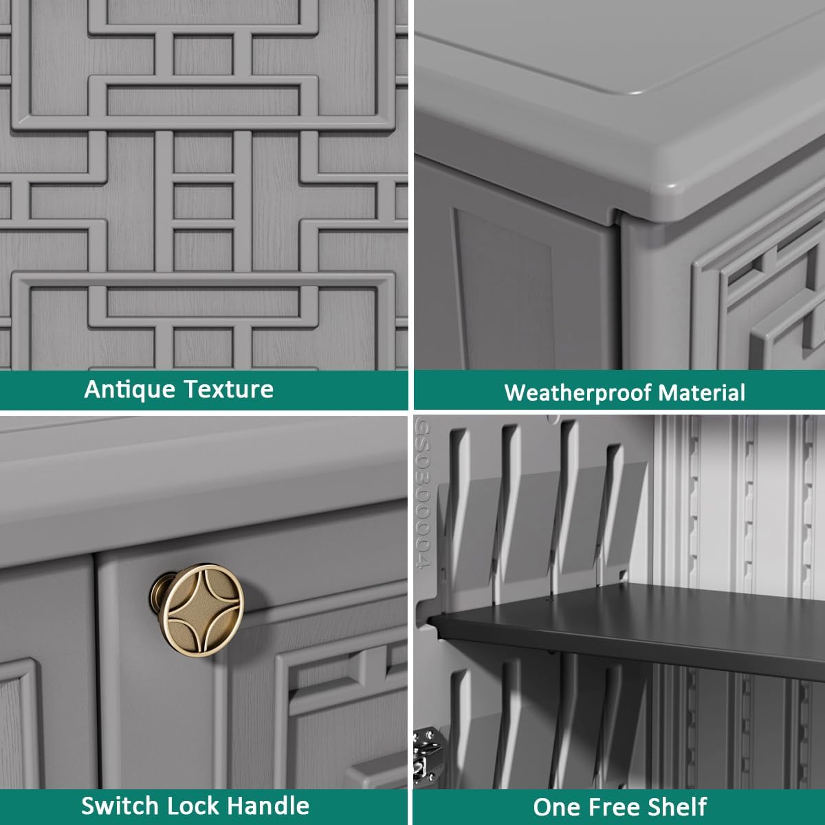- Colorfast HDPE Resin Material-This KINYING outdoor cabinet is made of premium HDPE Resin, which is durable and colorfast. No odor, UV resistance, no rust, easy to clean