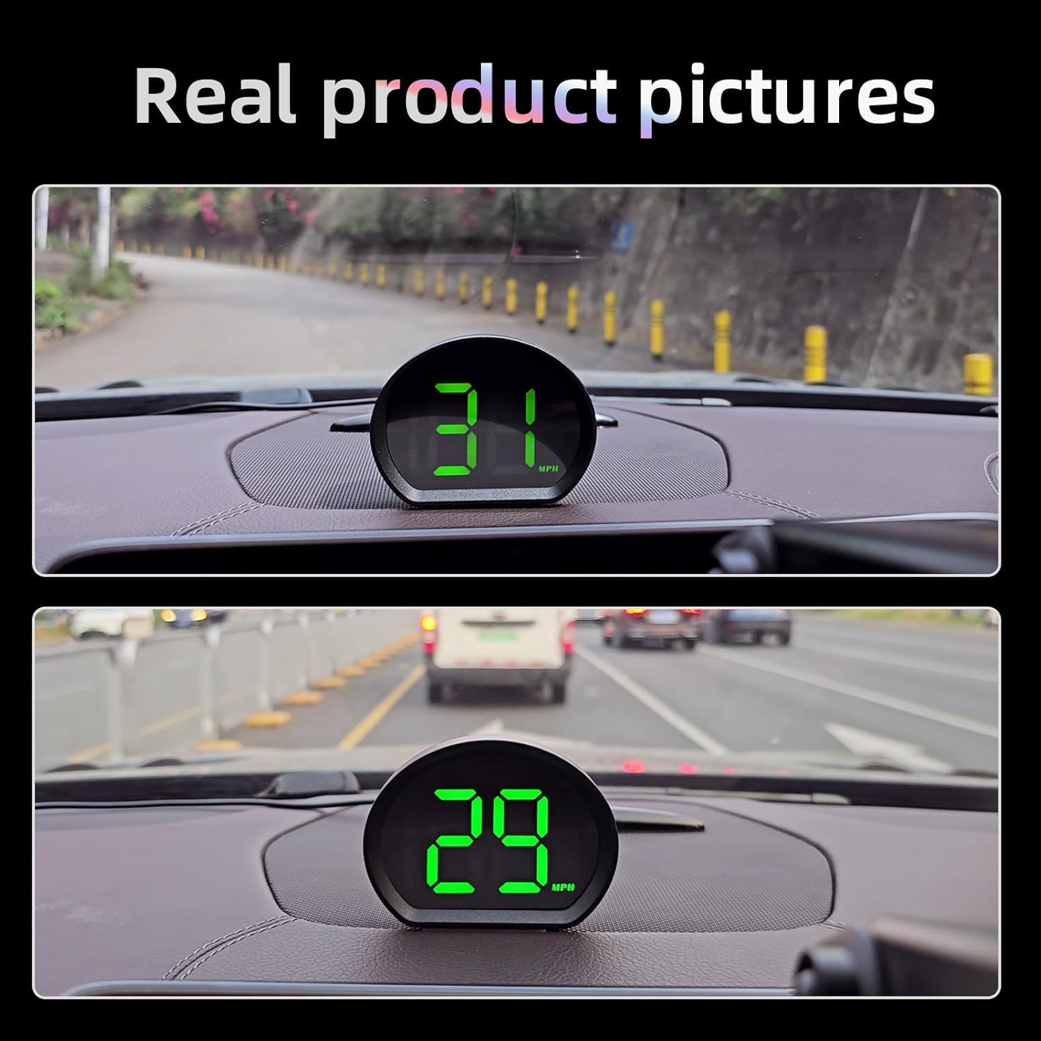 - 【Large Font HD Display with Zero Distraction】 Features a high brightness, oversized digital screen that remains clearly visible under all lighting conditions. Unlike conventional speedometers that wash out in sunlight, this HUD uses vibrant green numerals on a clutter free interface to deliver essential driving data without eye strain. Whether day or night, stay informed and drive safely while maintaining better speed awareness in traffic.