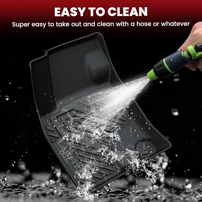 - 【Easy to Install & Clean】Precise alignment, snaps in place. LASFIT floor mats effortlessly organizes various in-car debris (liquid/crumbs/pet hair/sand). Follow a simple 3-step cleaning method after removal: 1) Shake off or sweep away large particles → 2) Rinse and air-dry → 3) Quick reinstall. Compatible with vacuum cleaning or high-pressure hose rinse, offering fast drying for instant reuse