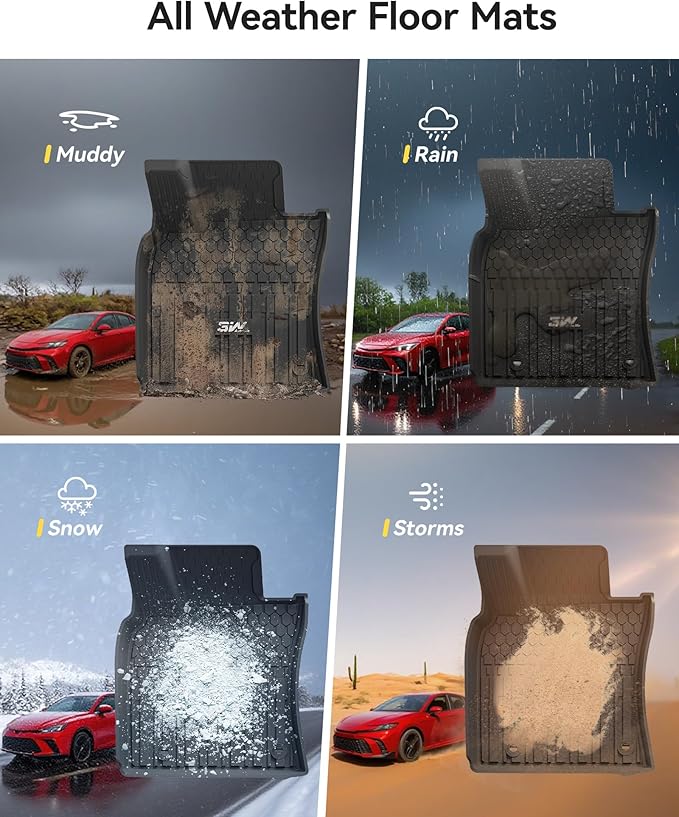 - Custom Fit – Designed using cutting-edge 3D laser scanning technology, our floor mats are precisely tailored for the 2025 2026 Toyota Camry Hybrid/LE/SE/XLE/XSE. Compatible with both AWD and FWD drive types, they offer complete, vehicle-specific floor coverage.