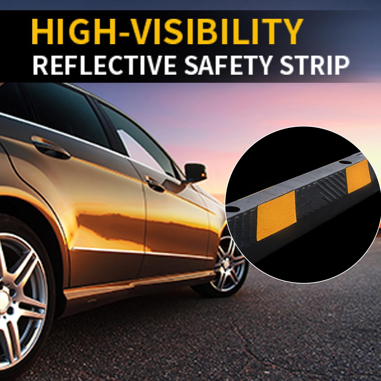 - ✔High Visibility: There are 8 high reflective yellow stripes on the parking curb, which provide a good visibility ensure 360 degree visibility day and night, even in rain, snow, fog, hail or other bad weather.