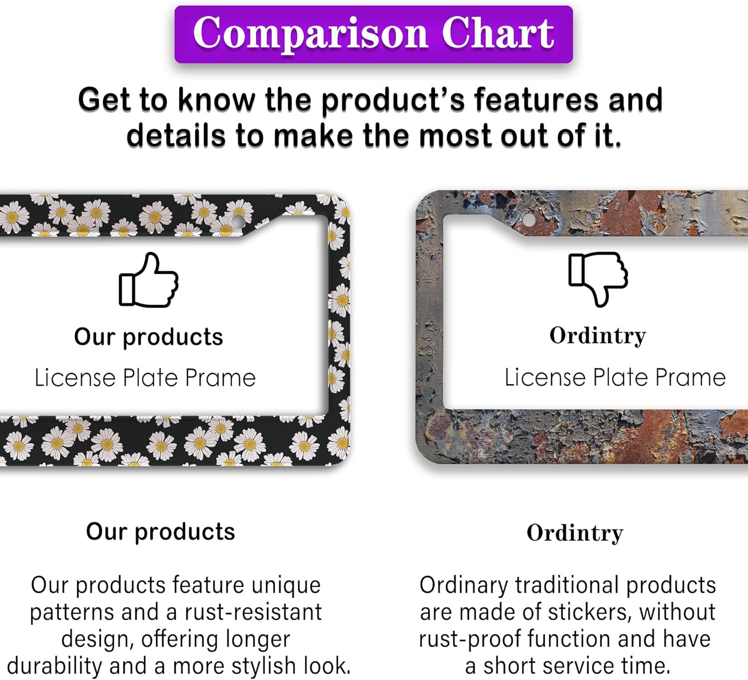 License Plate Protector Black and White License Plate Frames White Daisy Black Decorative Universal Aluminum Car Accessory 2 Pack with Screw Covers Set