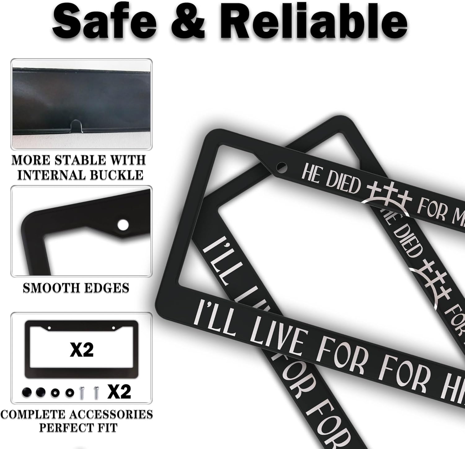 Fun License Plate Frame Cover Black and White License Plate Frames He Died for Me I’ll Live for Him Aluminum Metal Car Accessory 2 Pack with Screw Covers Set