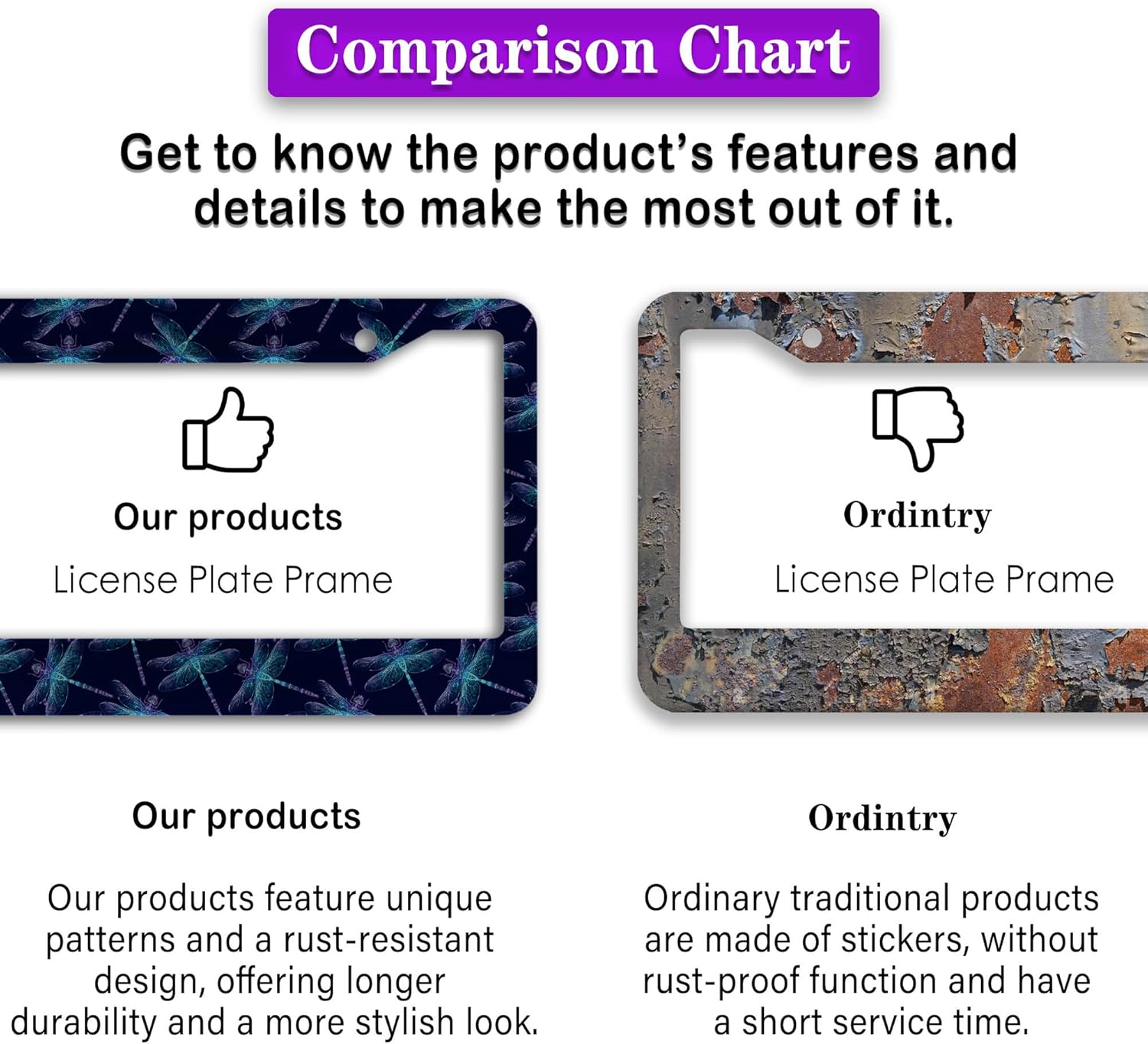 License Plate Frames Black Blue Automotive Exterior Accessories Beautiful Dragonfly Insects Aluminum Metal Car Accessory 2 Pack with Screw Covers Set