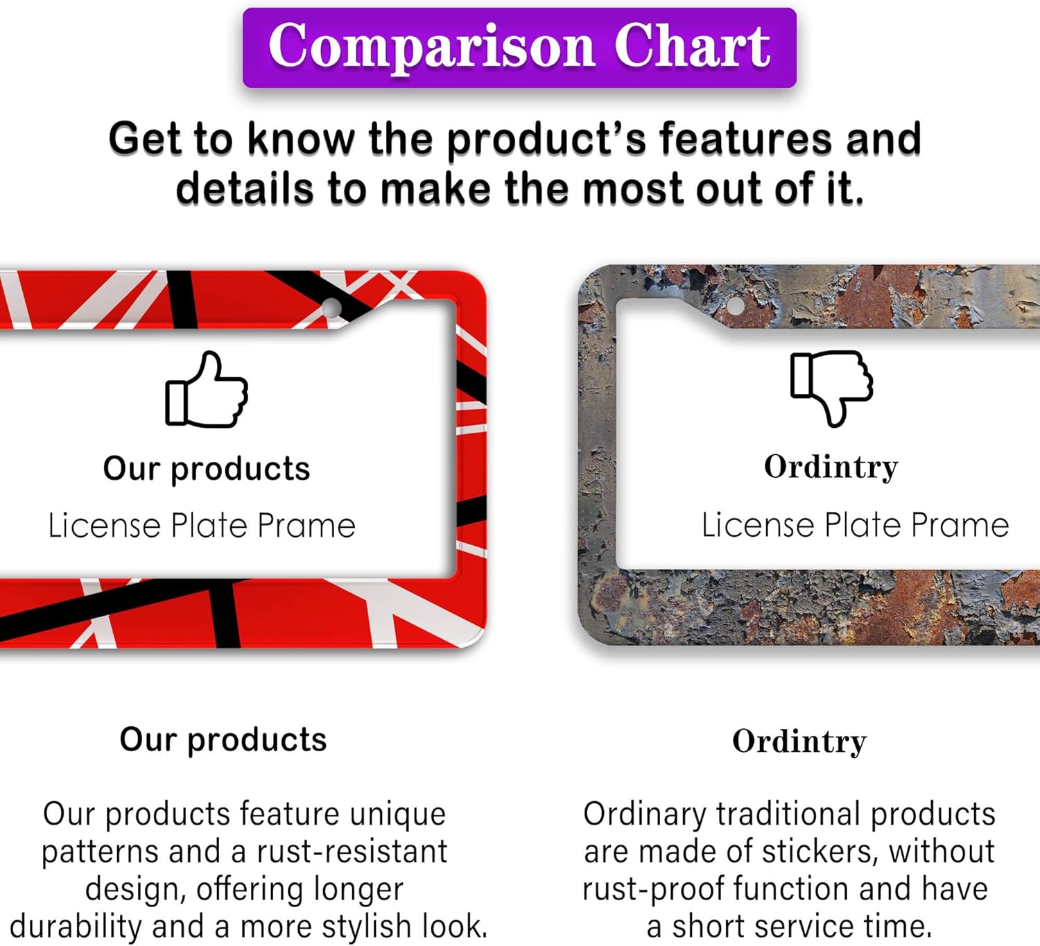 - FUNNY DESIGN: Featuring a unique and customized design, this license plate frame creates an eye-catching and bold statement for your vehicle. Not only does it add a touch of personality to your car, but it also makes for a great holiday gift, souvenir, or decorative piece for family, friends, and colleagues. Elevate your vehicle's style while sharing a laugh!