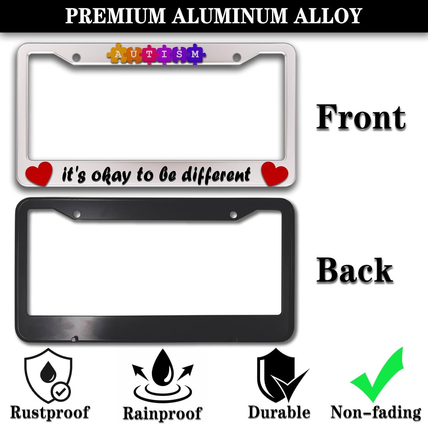 Automotive Exterior Accessories Multicolor License Plate Frames Autism It’s Okay to Be Different Aluminum Metal Car Accessory 2 Pack with Screw Covers Set