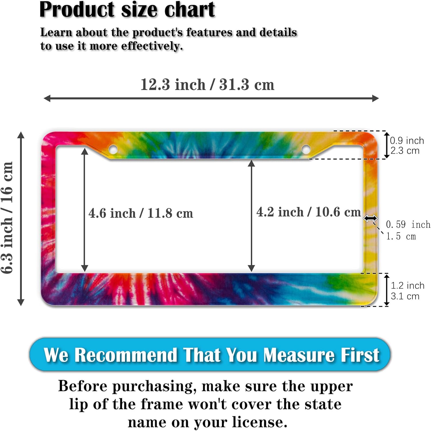 License Plate Frames for Men Rainbow License Plate Frame for Women Novelty Tie Dye Painting Aluminum Metal Car Accessory 2 Pack with Screw Covers Set