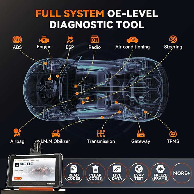 - Full System OE-Level Diagnostic Tool:The THINKCAR TK672 is a factory-level scanner offering comprehensive diagnostics for all car systems, including ECM, ABS, airbags, SAS, EVAP, TPMS, BMS, and EPB. This versatile tool can read/clear codes, display live data in multiple formats, and supports Auto-VIN for one-click car info identification. With the TK672, you can easily pinpoint vehicle issues, generate detailed Wi-Fi reports, and ensure smooth, safe operation. Ideal for professional mechanics and car enthusiasts, the TK672 provides OE-level diagnostics at an affordable price, making vehicle maintenance and repairs easy and confident.
