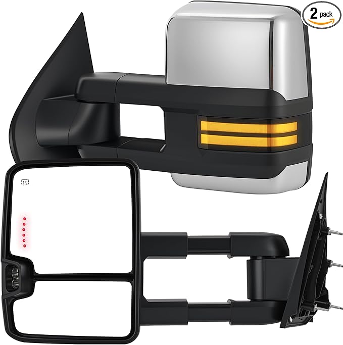Tow Mirrors Compatible with 2014-2018 Chevy Silverado GMC Sierra, Extended Trailer Towing Side Mirrors with Sequential Switchback Turn Signal, Backup Light, Power Heated Adjustable, Chrome