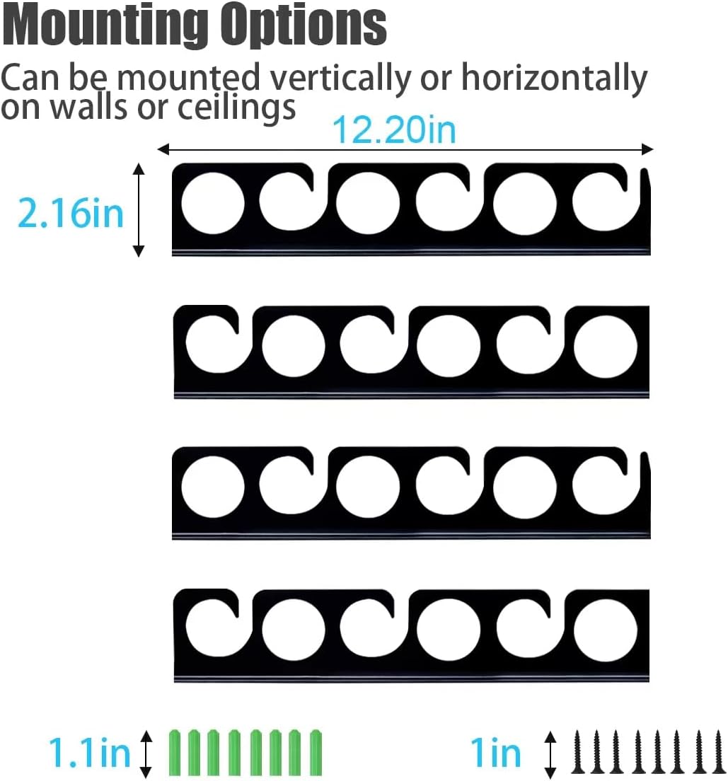 - Space-Saving Design: Wall and ceiling-mounted options free up floor space, keeping your fishing area organized and clutter-free, allowing for quick selection and retrieval when heading out for a fishing trip. Firmly holds rods in place to prevent them from falling or getting tangled, providing peace of mind for storage. Say goodbye to garage room clutter and make the most of your space with this space-saving solution.