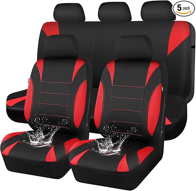 CAR PASS Neoprene Wetsuit Seat Covers, Waterproof Car Seat Covers Full Sets with 5mm Composite EVA, Universal Fit for Car,Sedan, SUV TrucksAnti Slip with Armrests, Airbag Compatible(Black Red