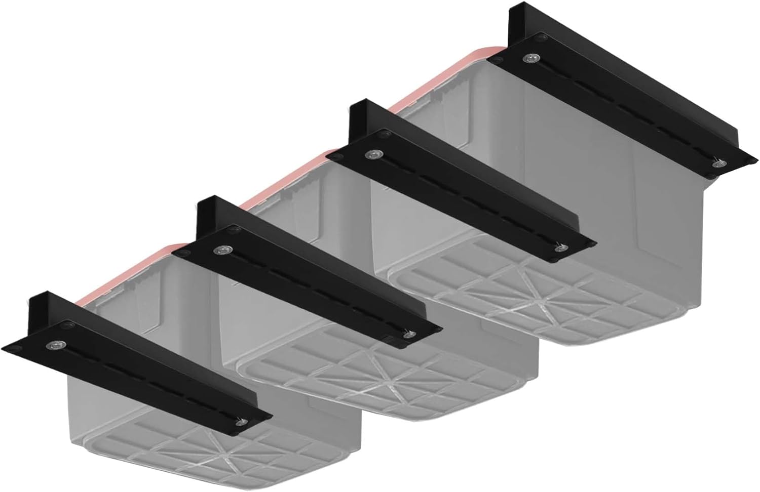 - [Adjustable] - Each set of this garage ceiling storage rack is customizable, with adjustable design and a safety bolt to support most storage bins and prevent them from falling
