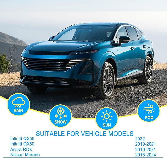 - 【Applicable vehicle models】Replacement for 2015-2024 nissan murano wiper blades,2019-2021 acura rdx wiper blades,2019-2021 infiniti qx50 wiper blades,2022 infiniti qx55 wiper blades,2014-2020 mitsubishi outlander wiper blades,2018-2021 mitsubishi outlander phev windshield wipers etc.