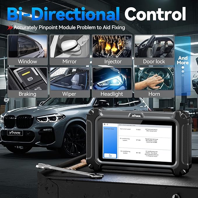 - 【Bi-Directional Control-Pinpoint Faults in Minutes 】XTOOL IP500 for BMW Bidirectional scan tool ditch the hours of tedious manual checks. Our advanced Active Test function puts you in direct command, letting you actively trigger and test critical vehicle systems like headlights (checking aim and function) or wipers (testing speeds and patterns). Instantly see if components like relays, motors, or actuators respond correctly, revealing the exact faulty part – whether it's a dying fuel pump relay, a stuck window motor, or a malfunctioning headlight adjuster – saving you costly diagnostic time and unnecessary part replacements.