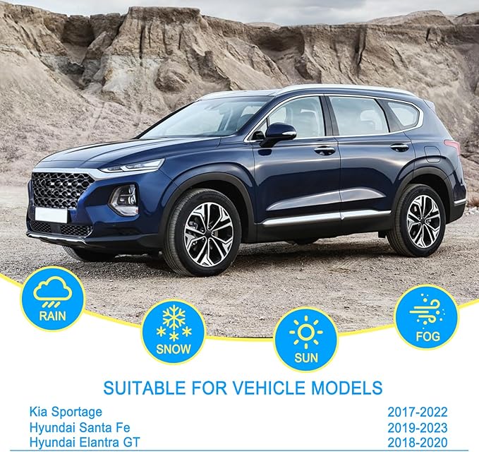 - Vehicle Service Type : Replacement for 2019-2023 Hyundai Santa Fe;2019 Hyundai Santa Fe XL;2018-2020 Hyundai Elantra GT;2017-2022 Kia Sportage;2016-2020 Kia Sorento etc Replacement for 2019-2023 Hyundai Santa Fe;2019 Hyundai Santa Fe XL;2018-2020 Hyundai Elantra GT;2017-2022 Kia Sportage;2016-2020 Kia Sorento etc