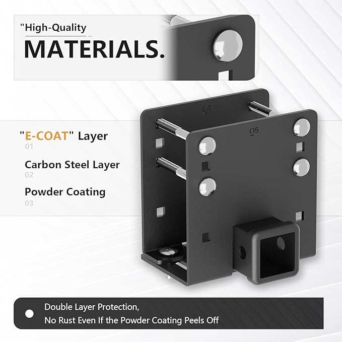 - 【Durable and Corrosion-Resistant】- The hitch receiver is treated with a durable black coating to guard against corrosion and damage. This protective coating boosts its longevity and ensures it can withstand harsh weather and road conditions, extending the life of the hitch.