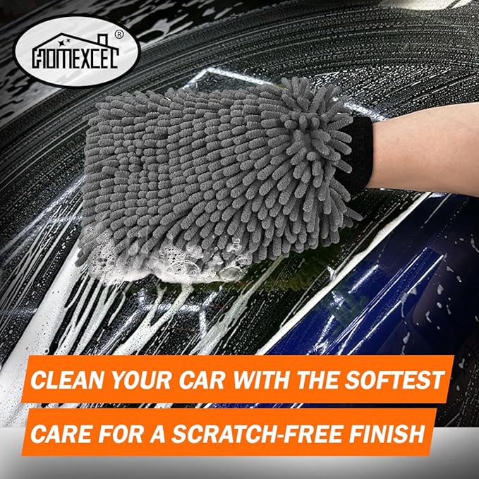 HOMEXCEL Car Wash Mitt, 2PK Chenille Microfiber Wash Mitt, Scratch-Free & Lint-Free, Rich Foam, Highly Absorbent, Double Sided, Perfect for Car Washing and Detailing, 10.2" x 6.7 ", Grey