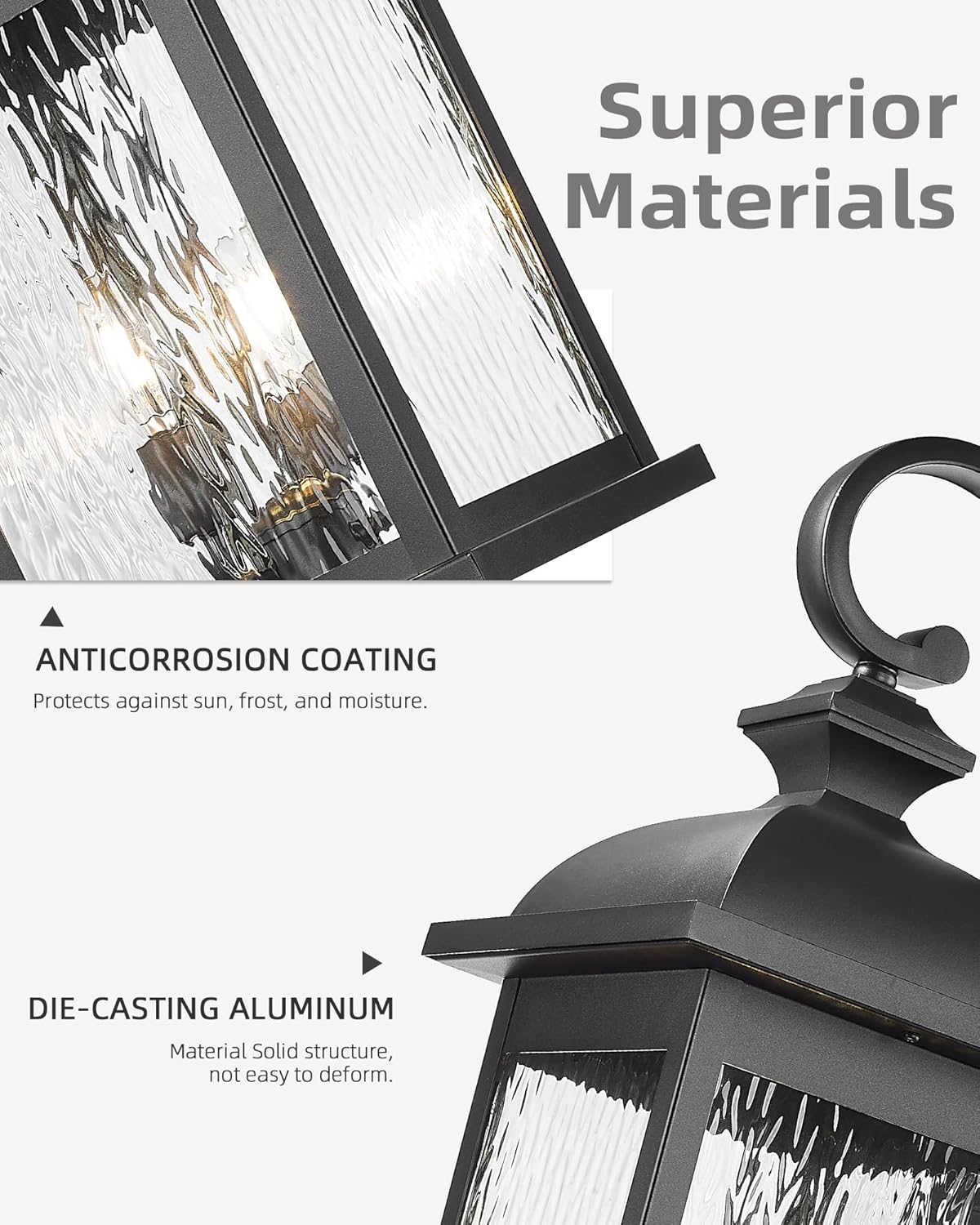 - ETL Listed & Weather-Resistant Construction: Built to withstand the elements, this outdoor wall light is crafted from high-quality aluminum with a matte black finish that resists rust and corrosion. The water ripple glass panels add a unique visual charm, creating a captivating lighting effect ideal for your exterior spaces.