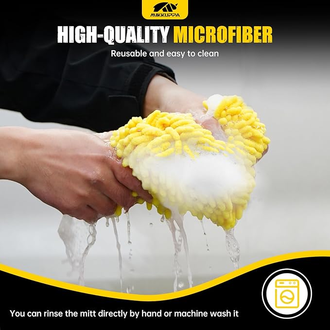 - [MICROFIBER SCRATCH FREE]: MIKKUPPA Car Wash Mitt is made with high-quality chenille microfiber, which is gentle on paint and won't scratch your car while maintaining ultra-high cleaning efficiency