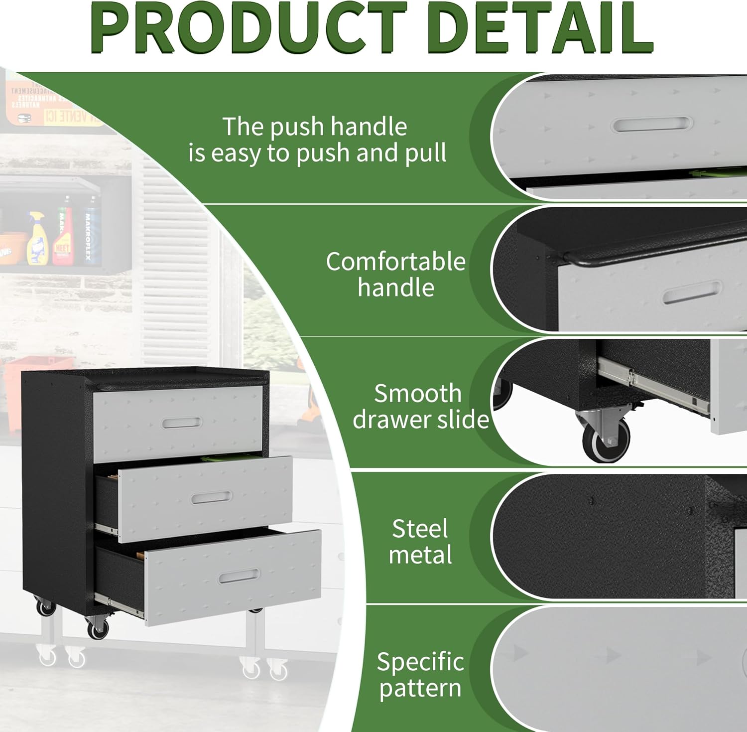 Metal Garage Storage Cabinet with Wheels,Locking Rolling Tool Cabinet with Drawers and Shelves for Home, Office, Garage & Workshop