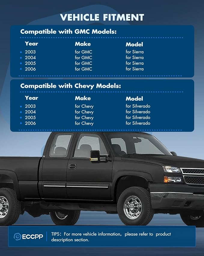 - Fitment - The Mirrors fit for 2003-2006 For Chevy Silverado,2003-2006 For GMC Sierra