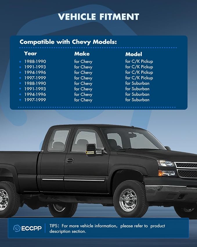 - Fitment - The Mirrors fit for 1988-1998 For Chevy For C/K Pickup For Suburban