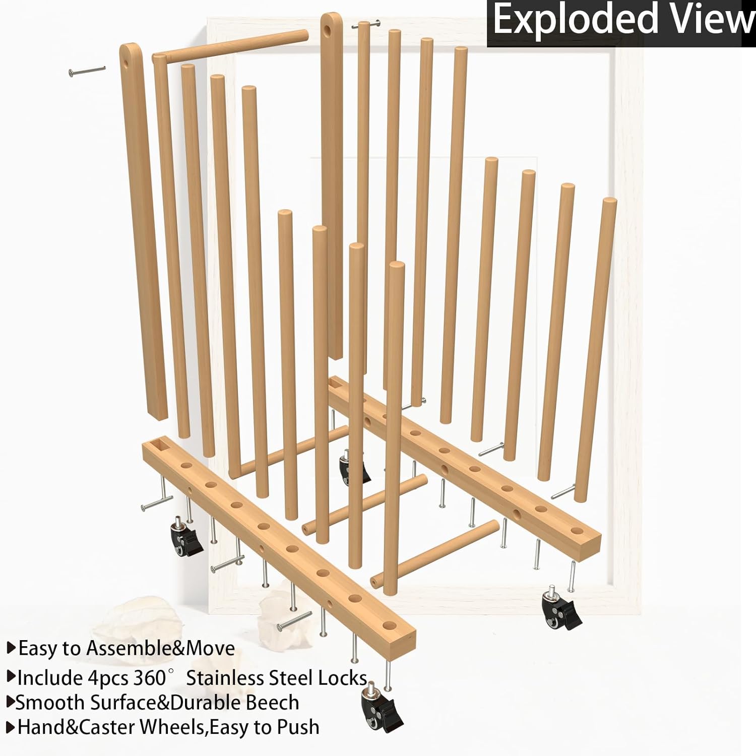 - [Easy to Assemble and Move]: Fix the dowel in place and use screws to make it more stable. The casters are designed with stainless steel locks, which are stable and durable, you can easily move and secure the canvas storage rack to any area you need.