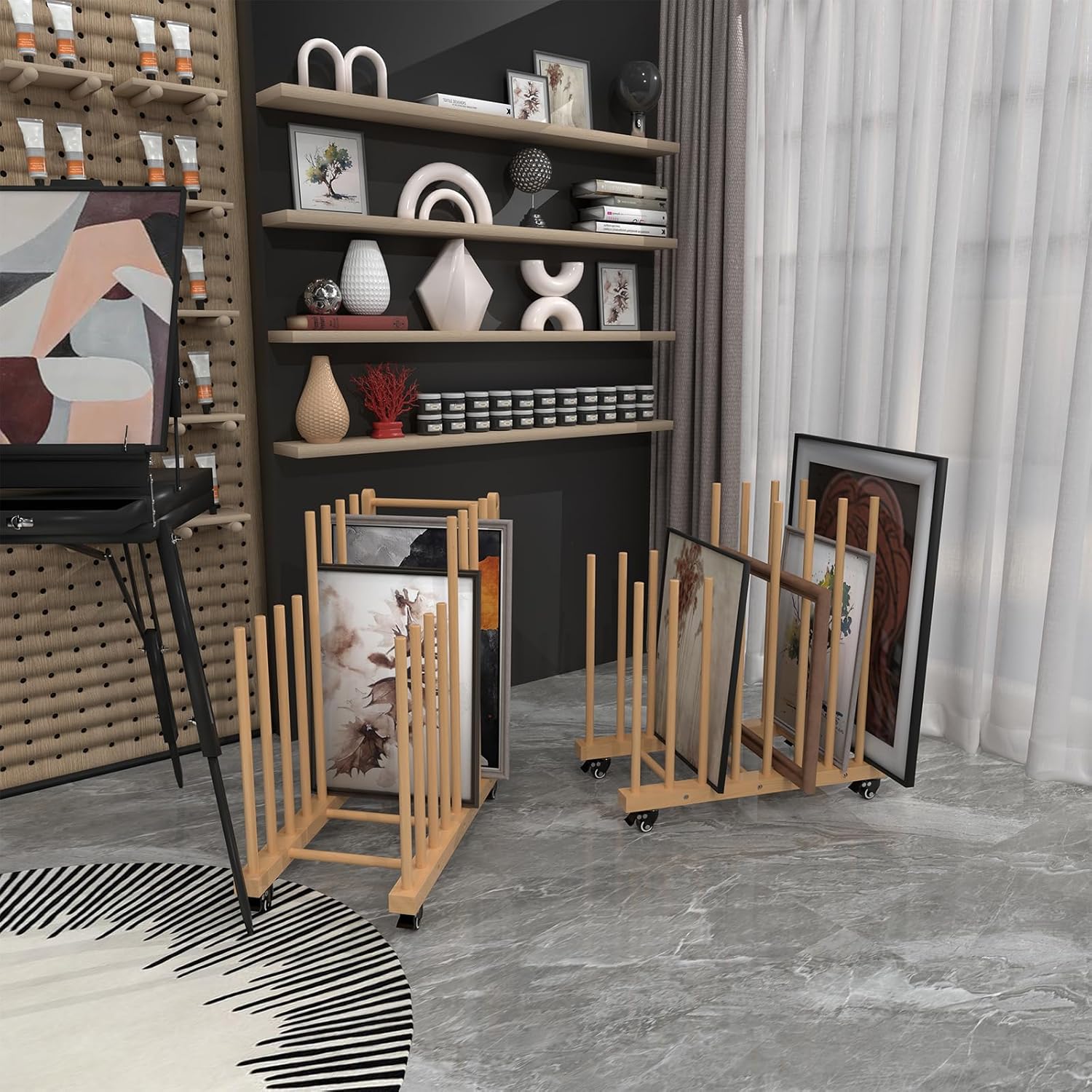 Art Storage Rack with Handle&Caster Wheels,Wooden Art Canvas Storage Stand,Art Drying Rack, Canvas Boards Rack for Drawing Board ,Art Studios,Panel,Artworks,Gallery