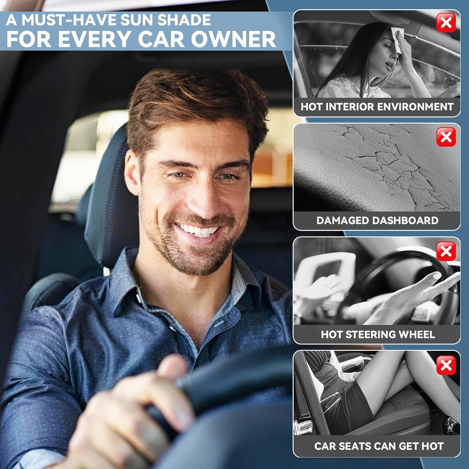 - ăWhy choose our SUN SHADE ?ăZOIBV sunshade is a must-have for every car owner. 2025 Upgraded design-4 LAYERS., the sun shade covers are made of two pieces of 240T fabrics,block 99.79% of UVA & 99.95% of UVB And SPF100 & UPF 50+.Provide a cool environment, comfortable rest and ads for extra privacy in the vehicle when parked.