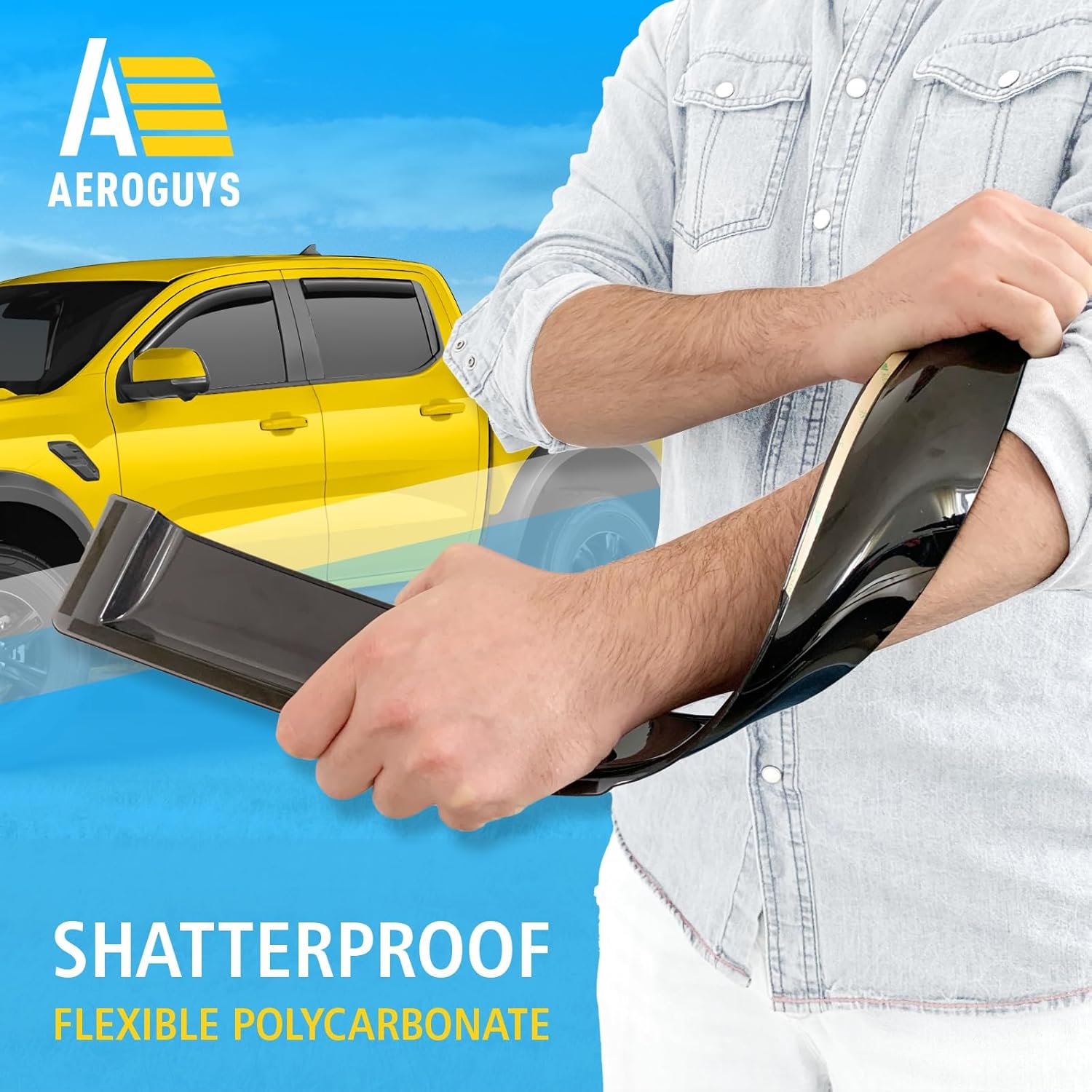 - Incredibly Durable AEROGUYS Auto Window Deflectors β They are made with strong and tough polycarbonate which is clear and scratch-resistant. They also provide UV protection making your ride more comfortable under all weather conditions.