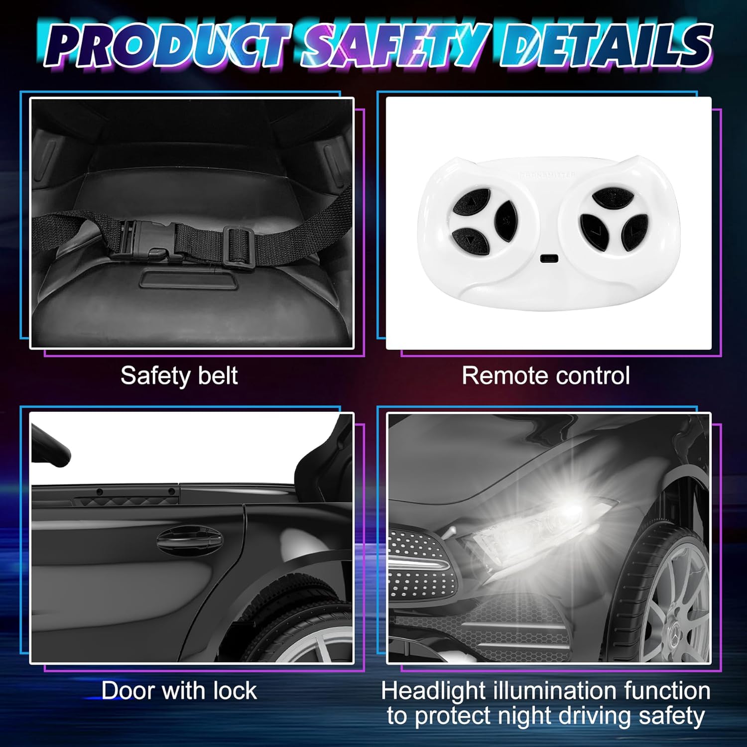 12V Kids Ride On Car with 2.4G Remote Control,Battery Powered Electric Car Ride On Vehicle Double Doors, 5 Point Safety Belt,LED Light (SC-Black)