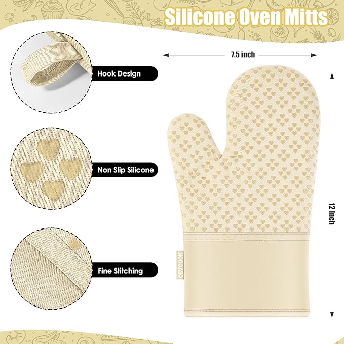 • Too Hot To Handle? Our cotton oven mitts have got you covered! Food-grade silicone, BPA free, and anti-slip silicone strips that can be held securely when handling the kitchen utensils.oven gloves are made of insulated, heat resistant cotton, offer excellent comfort while cooking and baking。Kitchen mittens comes with a hanging loop for convenient storage. The mitts are generously sized, comfortable to wear, and heat-resistant up to 500 F