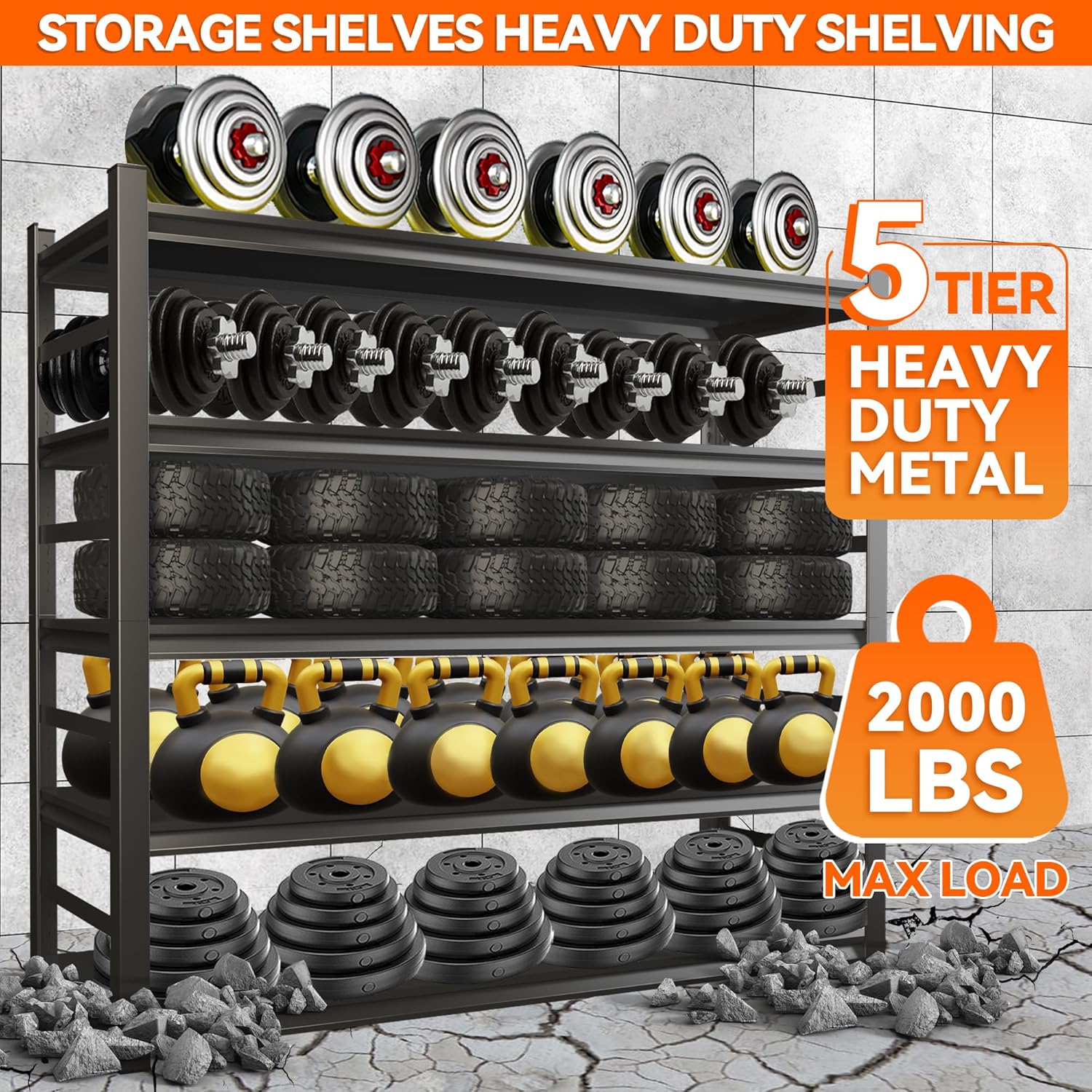 Adjustable Heavy Duty Metal Garage Shelving Unit with Fence, 5-Tier Storage Rack for Garage, Basement, or Warehouse, Durable Steel Shelves for Tools & Equipment, 63" H x 32" W x 16" D, Black